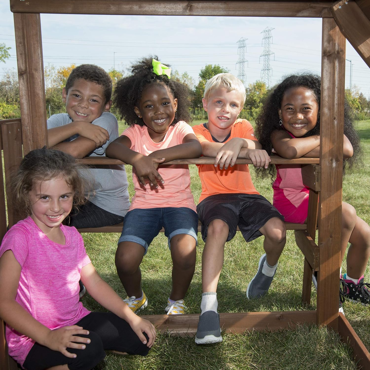 Atlantis Cedar Wood Swing Set with Wave Slide, Raised Clubhouse, Rock Wall, Belt Swings, Trapeze, Balcony, Lower Play Space, Snack Bar, Sandbox Area, Step Ladder, Outdoor Playset B073D66GQV