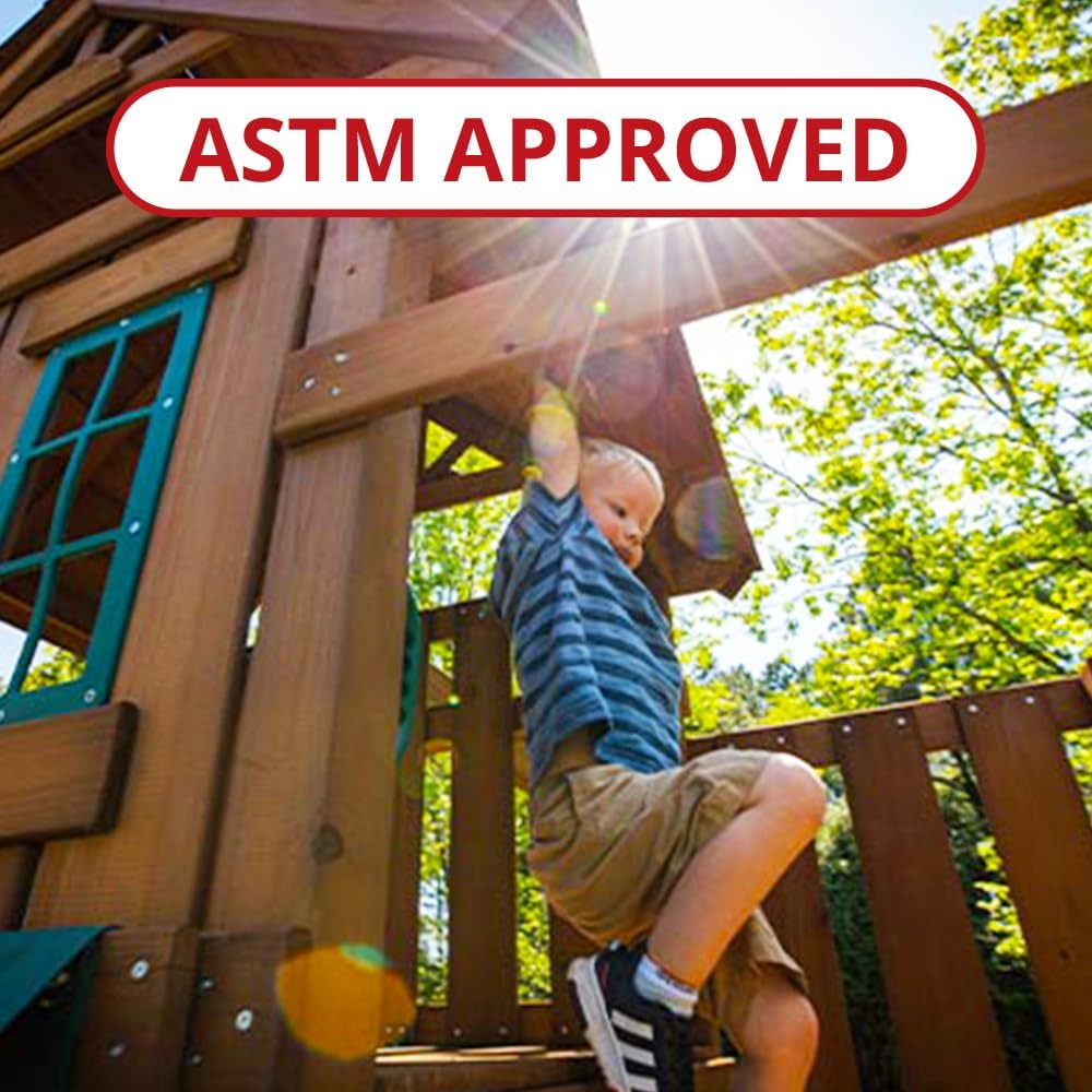 Kit includes all pre-cut premium lumber, accessories and slide with fully illustrated plans for quick and easy setup Swing set features architectural details along with window and wood roof for cover Set includes slide, climbing rock wall, picnic table with awning, 2 swings with chains, and a ring/trapeze combo swing The included flags, steering wheel […]