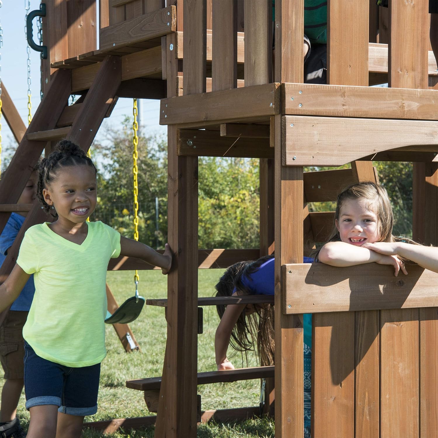 Swing-N-Slide WS 8357 Elkhorn Swing Set with Slide, Climbing Wall & Swings, Wood B07H87RXFF
