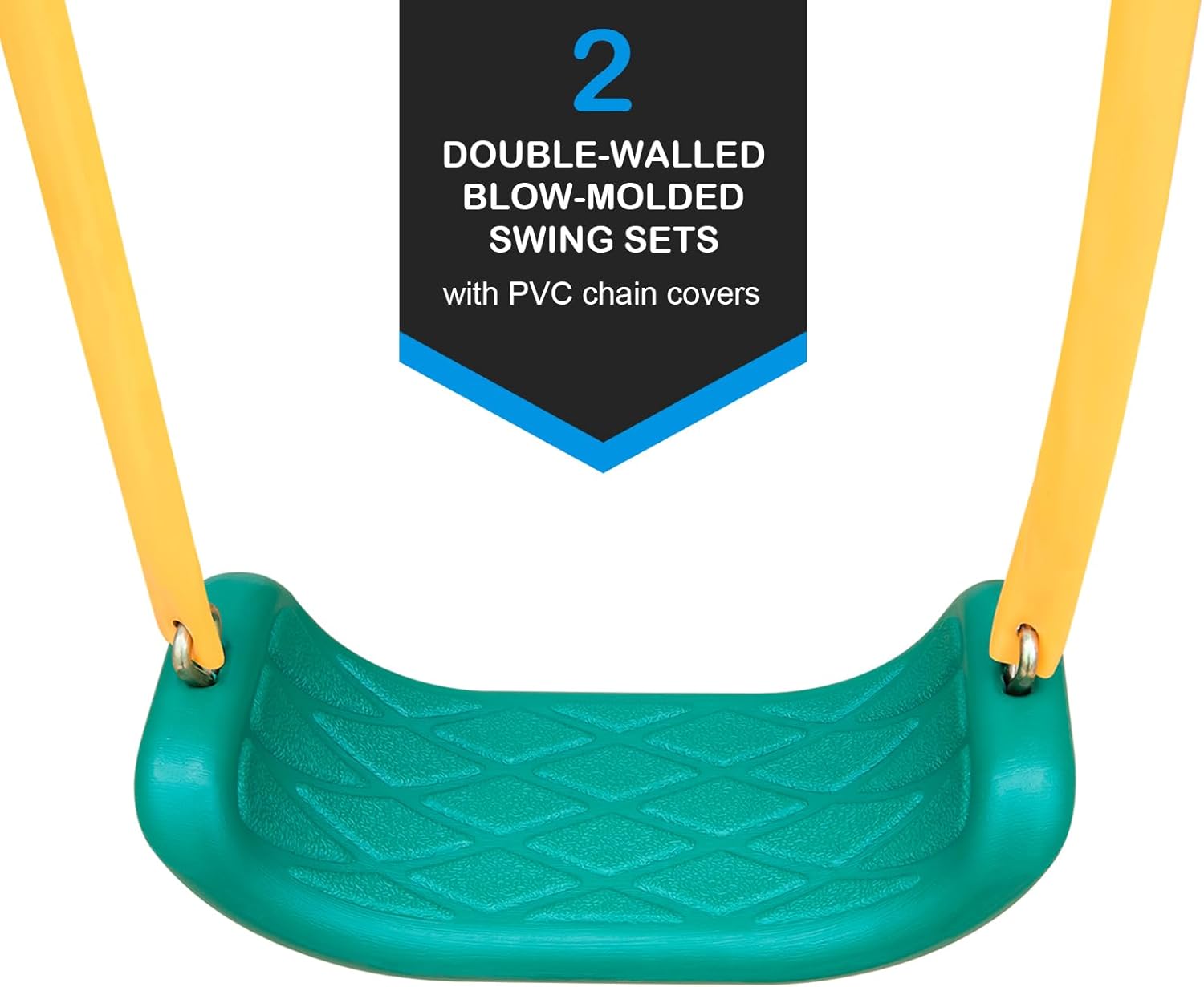 Swing Set for Backyard Outdoor Heavy Duty A-Frame Metal Playset with Seesaw, 2 Swings, Slide and Glider for Kids Toddlers B0C8MQDZZR