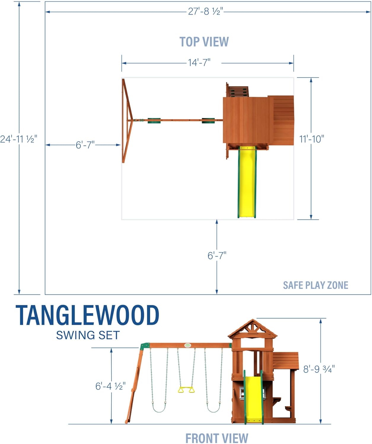 Tanglewood Cedar Wood Swing Set with Wave Slide, Clubhouse, Playhouse, Covered Snack Bar Window, Bench, Rock Wall Ladder, Belt Swings, Trapeze, Porch, Step Ladder, Outdoor Playset B016XMU076