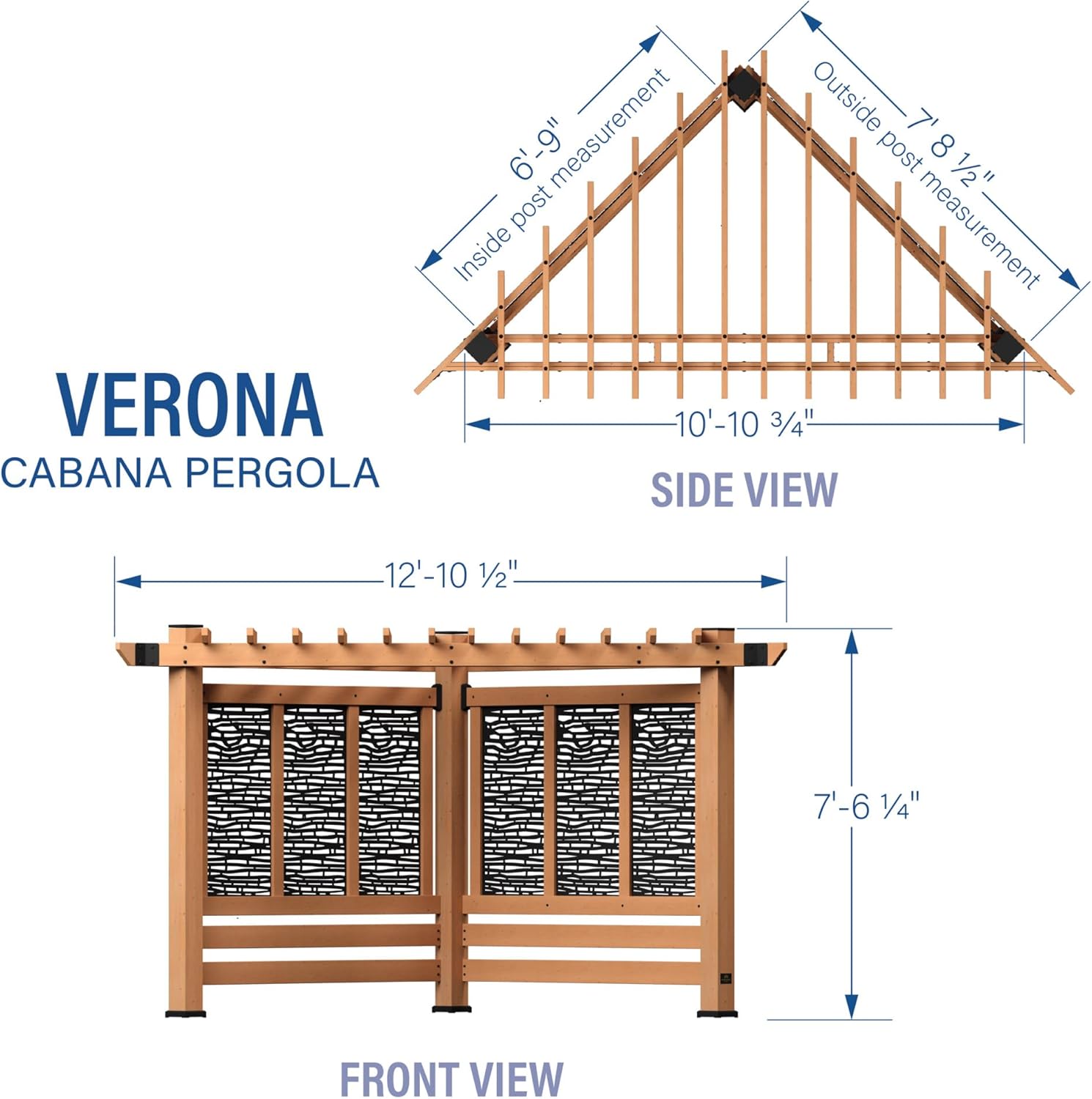 Verona 12′ x 8′ Cedar Wood Cabana Corner Pergola with Bamboo Privacy Panels for Outdoor Patio, Deck, Garden, Poolside, Entertaining B09L6H3GMK