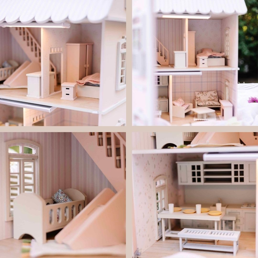 Wooden Dollhouse – 55+ Pieces Furniture and Accessories – Large 3-Story Wooden Doll House with Modern Decor B0DPR3TH1Y