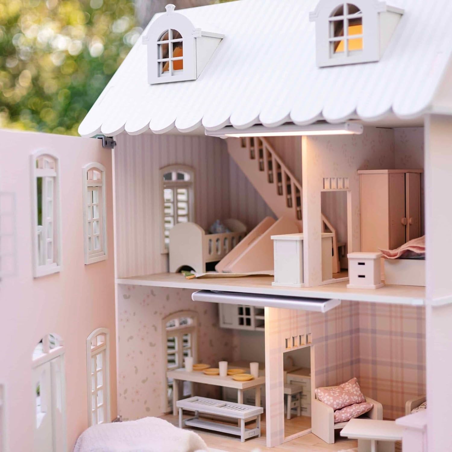 Custom Designed, Detailed Dollhouse Set: This handcrafted set, made up of over 55 pieces, showcases elegant French design with intricate furniture, decorative accessories, and detailed rooms. Crafted from reliable and durable materials. Lighting and doll family are not included. 3-Story French Style Dollhouse: The lower floor features a living room and kitchen, while the upper […]