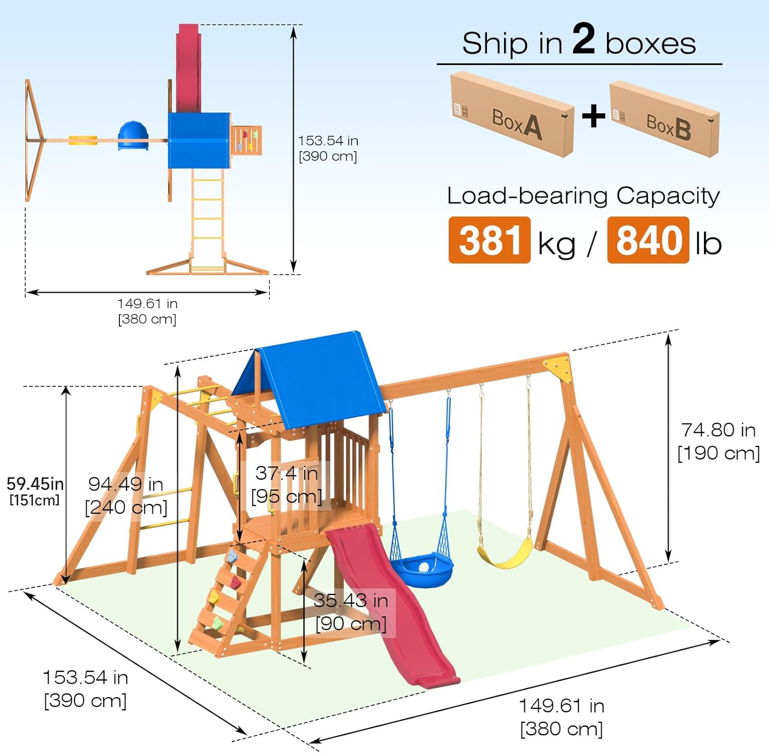 Wooden Swing Sets for Backyard, Playground Sets for Backyards with a Slide, Rock Climbing Wall, Sandbox, Colorful Shed Cloth, Monkey bar, and More – Outdoor Playset for Backyard 3-6 Year-Olds B0CZKZSDZ2