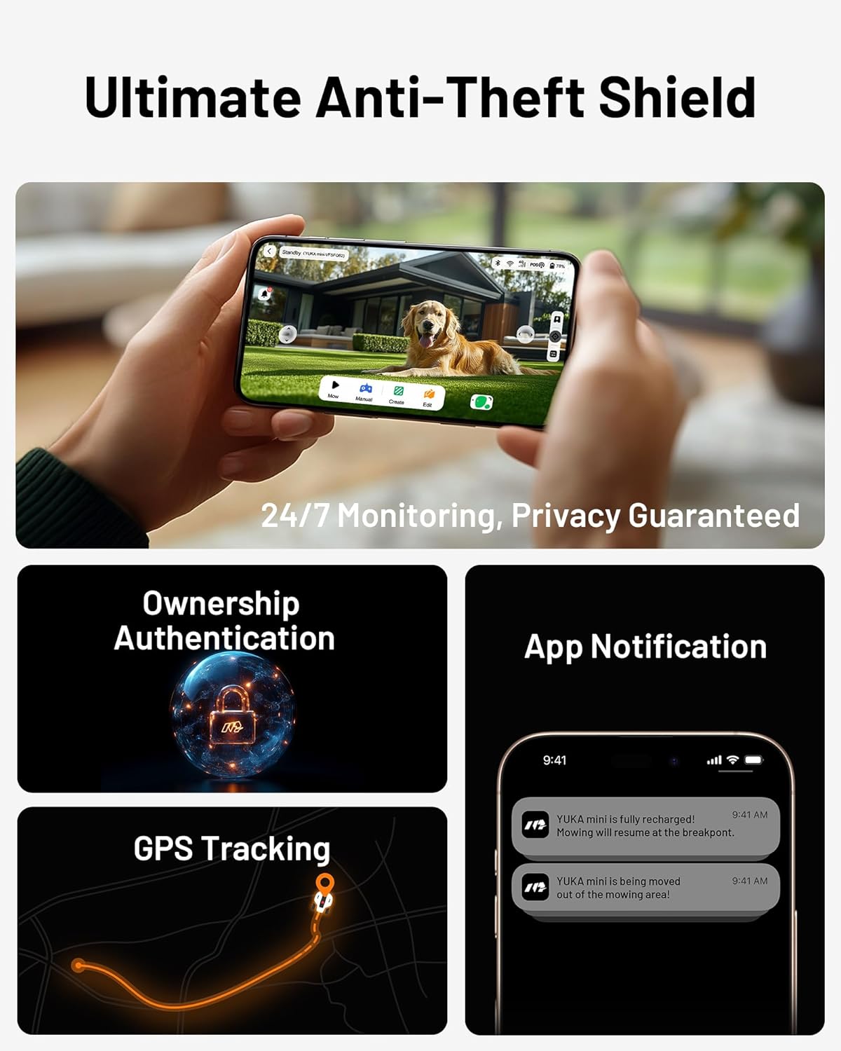 YUKA Mini 700H Robot Lawn Mower, Reception 0.17 Acre, Max 0.27 Acre, Ultrasense AI Vision+ RTK Positioning, Auto Mapping, App Control, 50% Slope, Cutting Height 2”~3.5”, 15 Mowing Zones B0DZNR7WVZ
